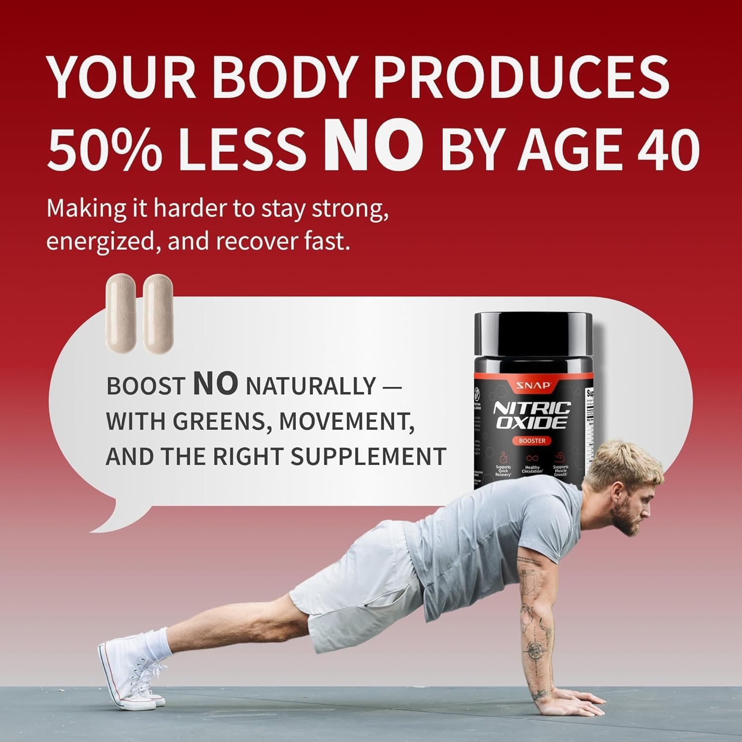 Snap Supplements Nitric Oxide Supplement with L-Arginine to Support Energy, Quick Recovery, Heart Health, Muscle Growth & Circulation, 60 Vegetarian Capsules (1 Month Supply)